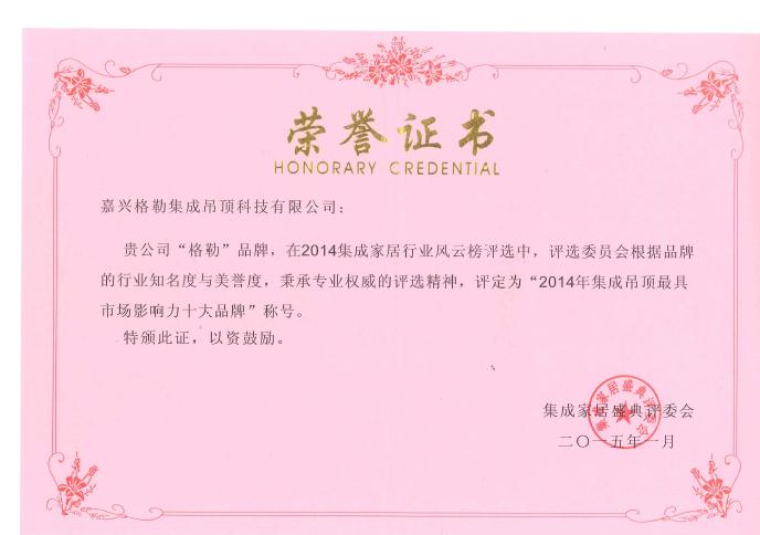 作為集成吊頂?shù)陌l(fā)源地,嘉興這幾天連續(xù)降溫,如同2014年的建材環(huán)境一樣,然而2015年1月16日是個(gè)值得全體“格勒人”紀(jì)念的日子,即使周圍環(huán)境再怎么不好,格勒吊頂依然表現(xiàn)強(qiáng)勁,獲評2014年集成吊頂最具行業(yè)影響力十大品牌!
