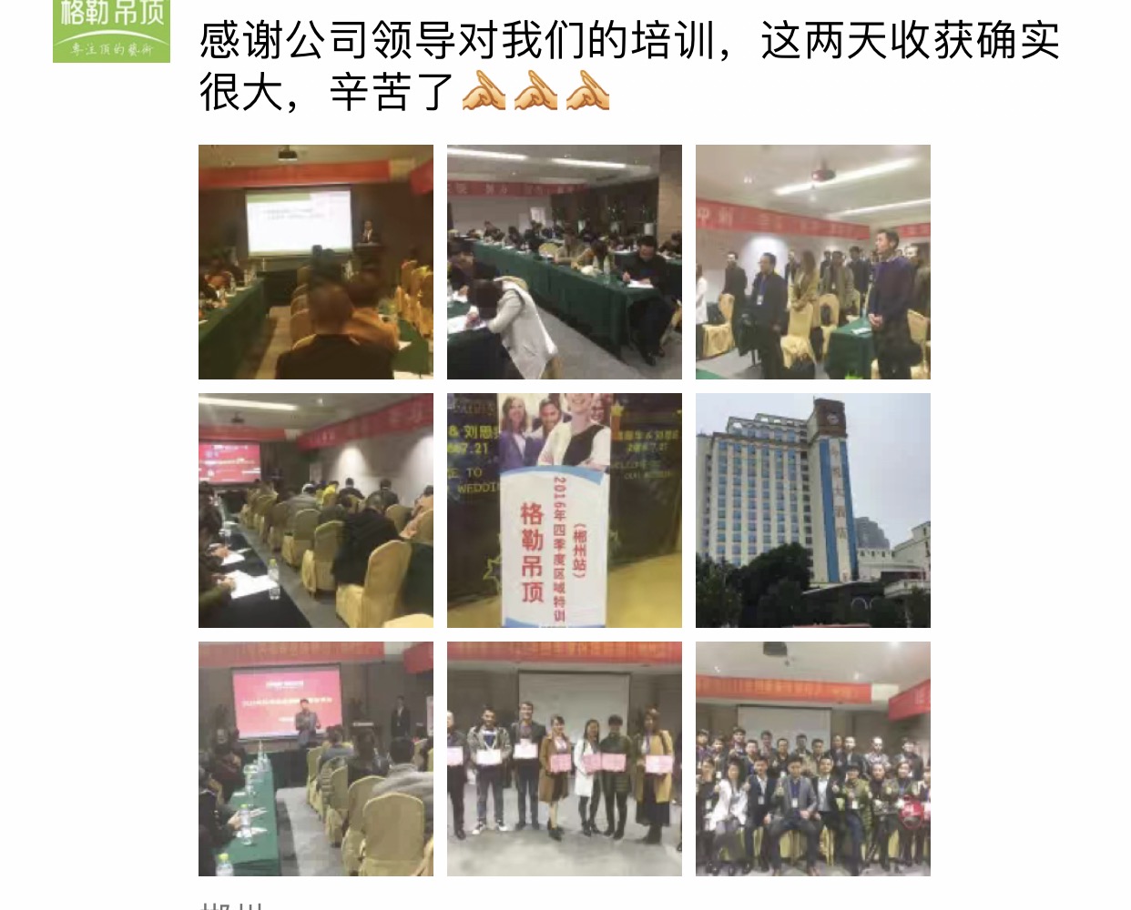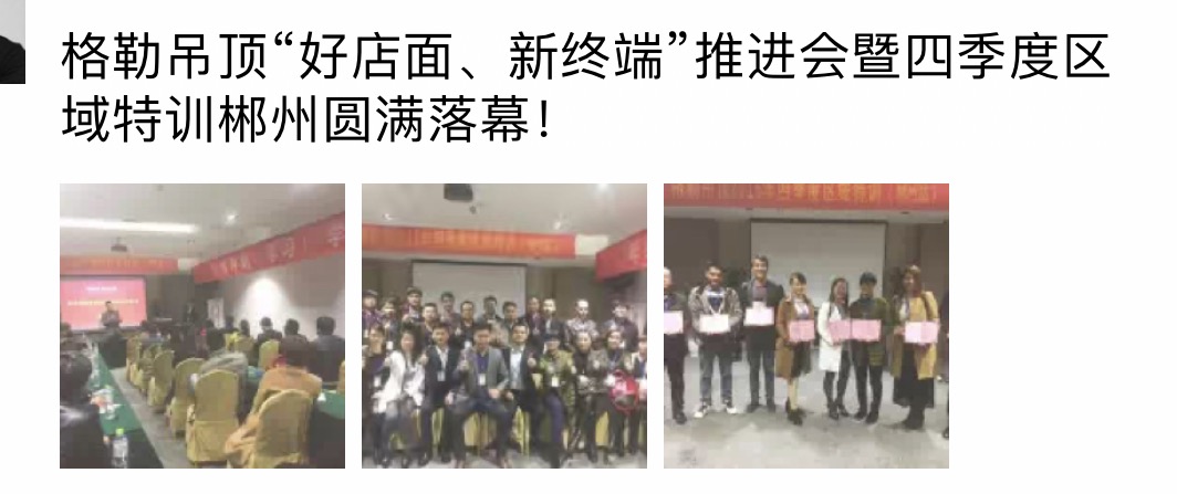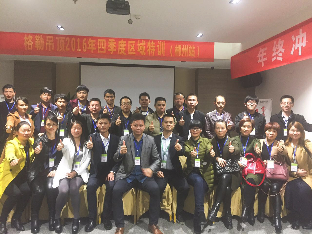 2016年格勒集成吊頂“好店面、新終端”推進會暨四季度區(qū)域特訓(xùn)會重慶站剛剛落幕, 11月15號,第四站在鐘靈毓秀的福城湖南郴州今悅大酒店拉開序幕,來自湖南、湖北、廣西等地區(qū)的格勒家人參加了本次培訓(xùn)會,針對公司產(chǎn)品、市場營銷、互聯(lián)網(wǎng)營銷等進行了系統(tǒng)的學(xué)習(xí)。