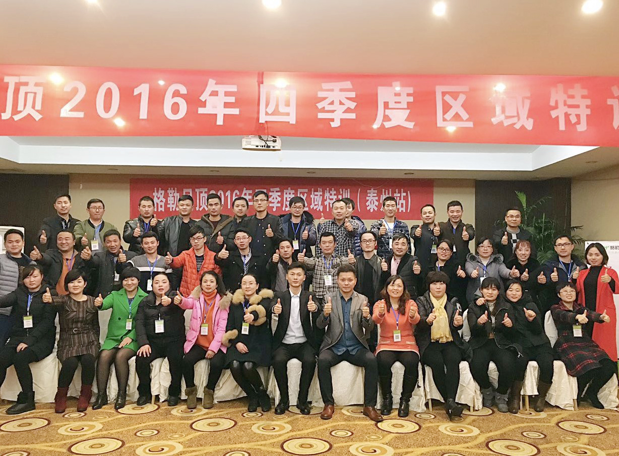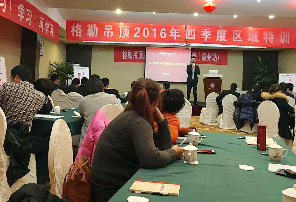 為了提升格勒經(jīng)銷商的綜合競爭力,提高經(jīng)銷商的綜合服務(wù)能力,實(shí)現(xiàn)卓越服務(wù)和精準(zhǔn)營銷,格勒“好店面、新終端”推進(jìn)會(huì)暨四季度區(qū)域特訓(xùn)會(huì)來到了最后一站--江蘇泰州市。12月6日,公司培訓(xùn)部人員空降江蘇泰州市在金鳳凰大酒店開啟收官戰(zhàn)。