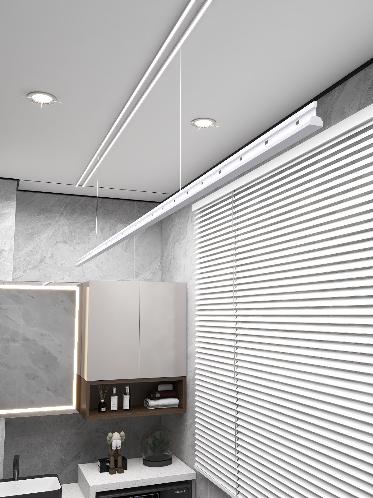晾衣、照明二合一,不需要額外裝燈,好看又省錢。