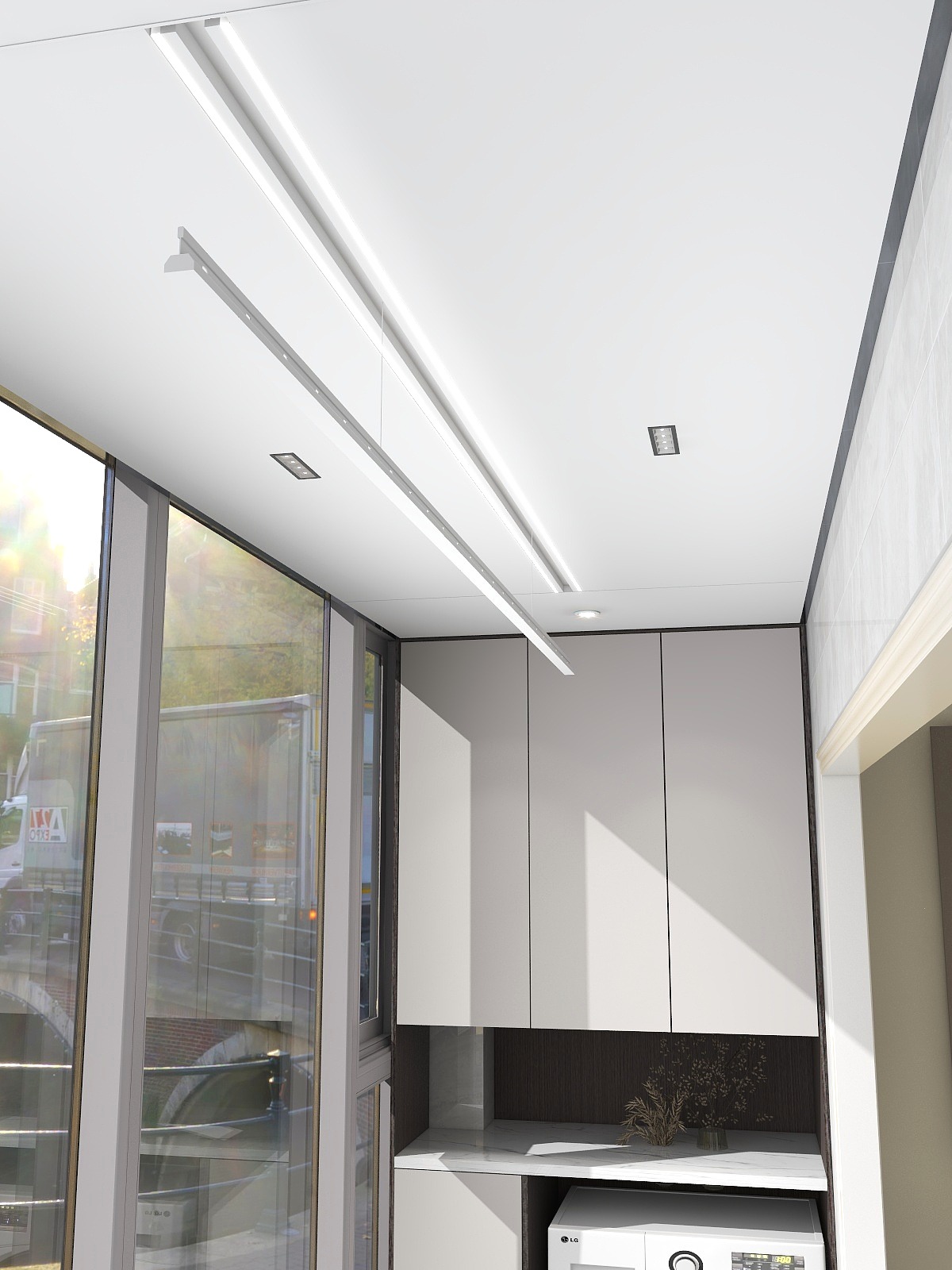 隱藏式晾衣機(jī)能完美融入吊頂內(nèi),不用時(shí)自動(dòng)收進(jìn)吊頂,收放自如。