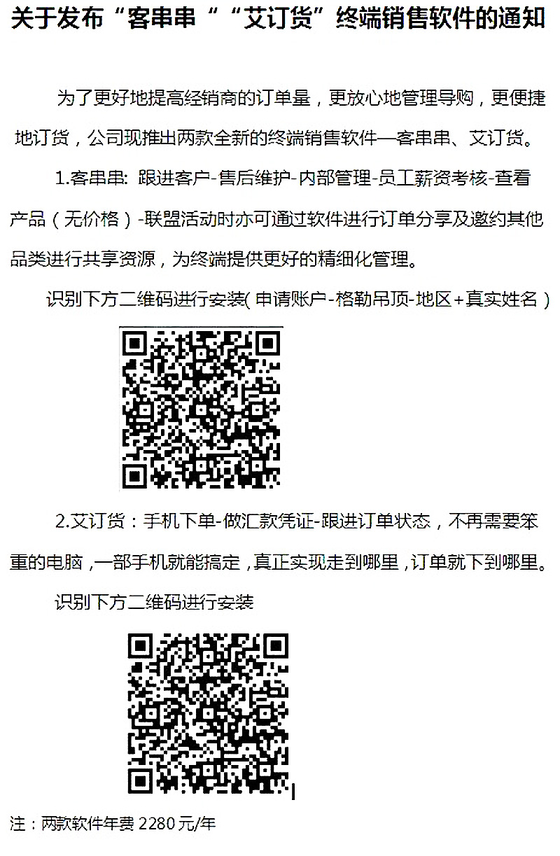祝賀格勒全屋吊頂開發(fā)經(jīng)銷商門店導(dǎo)購軟件